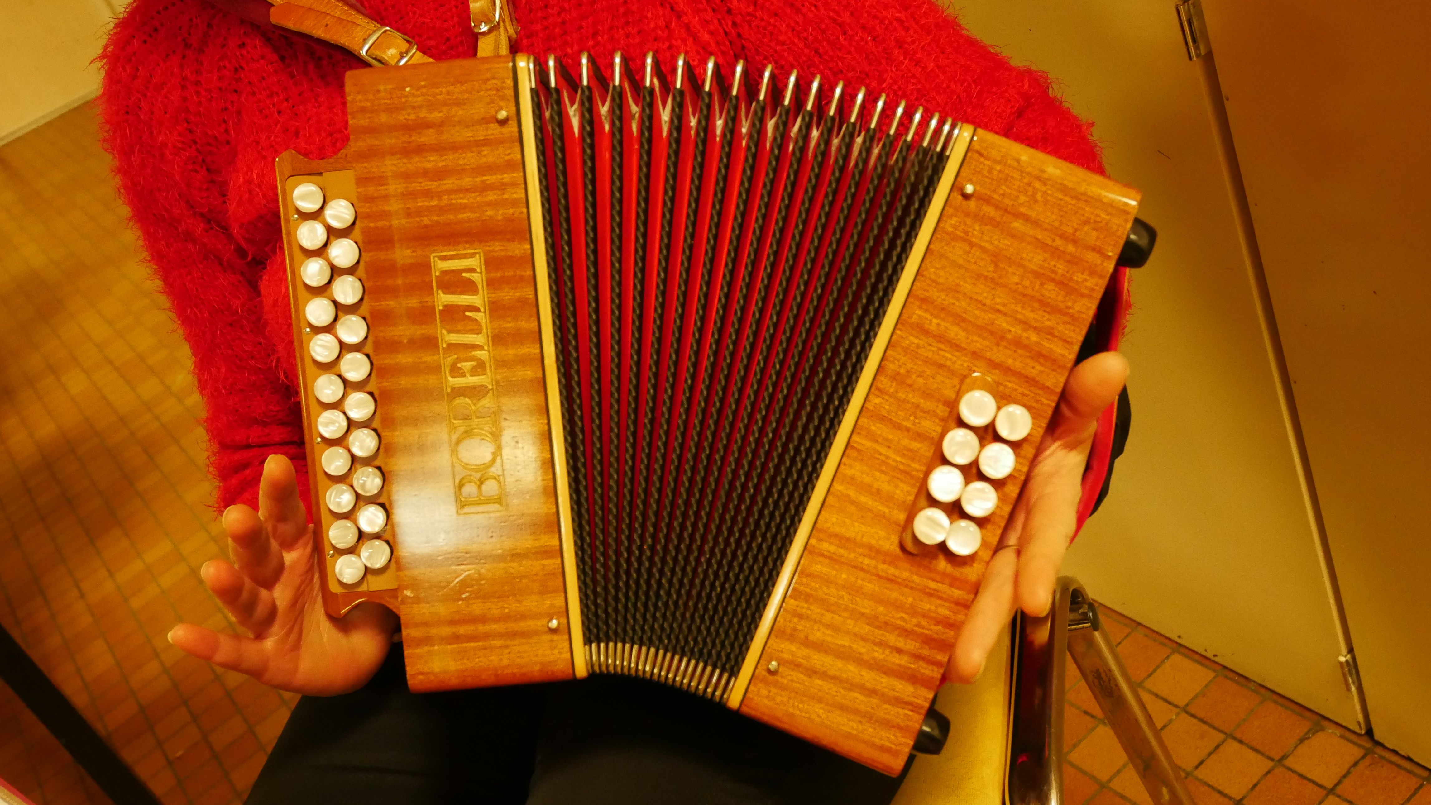Classification Dournon : 412.121 Aérophone, air contenu dans un corps tubulaire ou globulaire, à anches libres sur plaquettes ou casiers avec soufflets, à boutons