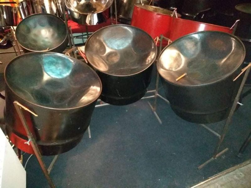 Les steel drums (ou steel pan, de steel, « Acier ») sont joués en orchestre (steelband ou steel orchestra) et classés selon différentes tailles couvrant les tessitures de basse, baryton, alto, mezzo et soprano. Ils ont remplacé des tambours de bambou ayant eux-mêmes remplacé les tambours africains à Trinidad. Ils sont joués aujourd’hui dans le monde entier avec des répertoires allant de la symphonie classique au calypso trinidadien.