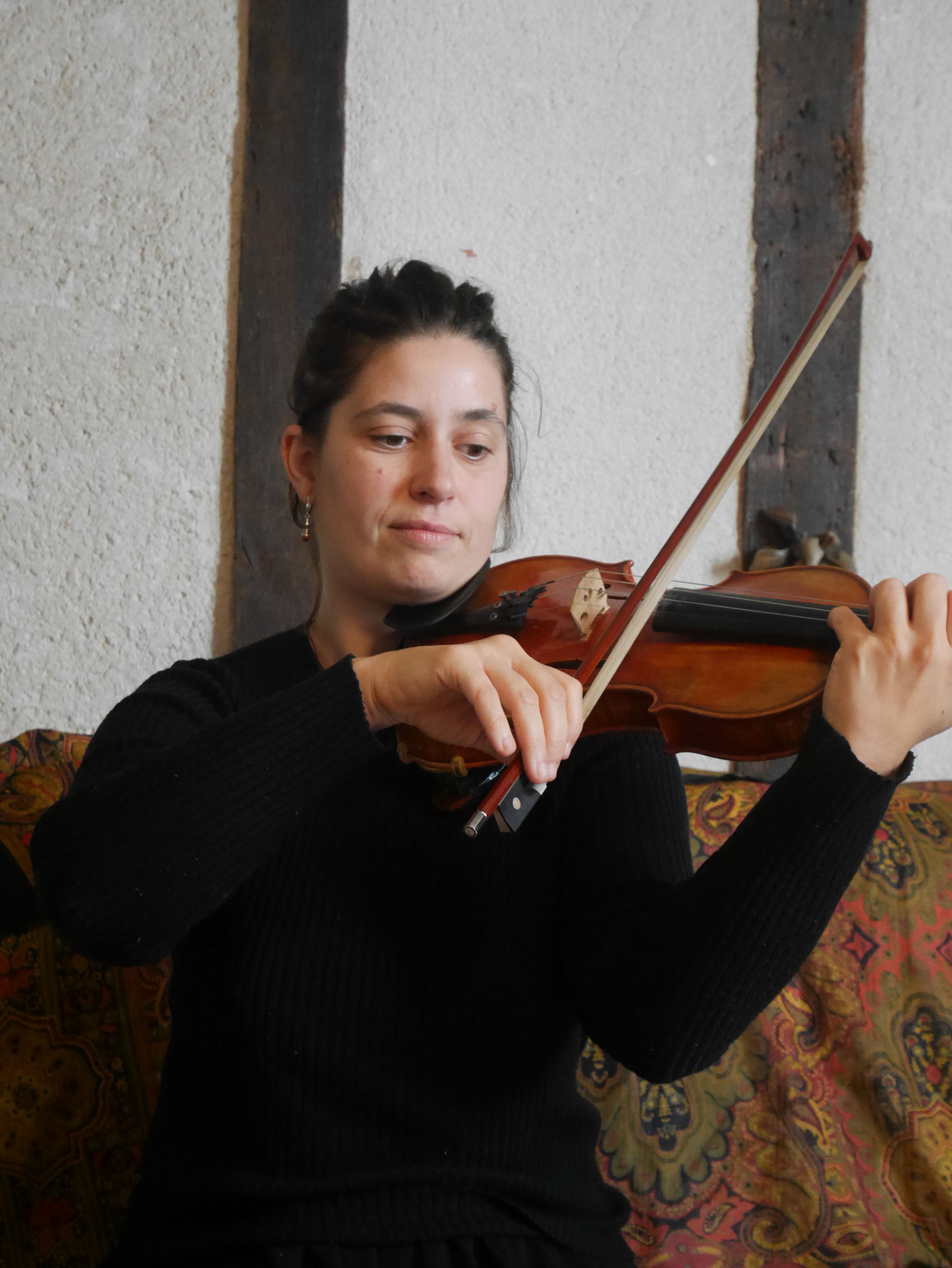 Lina Noui est une violoniste d’origine française, passionnée depuis son enfance par les langues étrangères. Après avoir suivi un parcours classique au conservatoire, elle découvre les musiques traditionnelles des Balkans et s’ouvre alors à de nouvelles techniques vocale et instrumentale. Devenue musicienne intervenante, elle travaille dans plusieurs écoles de la région et participe à différents ensembles (Amorosa Trio, Mo&bius, Fadafeï, Trio Khidam).